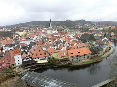 プラハ日曜日の朝 旅行記 2016年11月06日 プラハ滞在3日目も間もなく終わり、バス移動でウィーンへ向かいます。 雨の天気予報が外れて、青空もみえる穏やかな朝です。気温は8度、無風です。 移動の途中、世界遺産であり、世界一の街並みといわれているチェスキー・クルムロフに立ち寄ります。世界一がどんなものか見てきます。 チェコの通貨であるコルナが余っている人も使う最後の機会です。 生徒の口から出る恐ろしい言葉をよく耳にします。 「ユーロもいっぱいお余っているから、何か買わなければ!残しても仕方ないもんね」 (残してもいいではないか)これは大人の発想なのか? 使い切って帰る雰囲気です。保護者の方々は覚悟しておいてください。